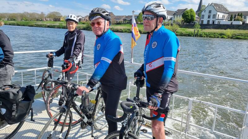 vandaag met zijn zessen oip pad: John, Ron, Erna, Giel, George en Louwrens. Op weg naar Eijsden. Eerst een kleine omweg bij Itteren en dan via de oude Molenweg naar het zuiden. Af en toe kwamen we tourrijders van de amstel gold race tegen of reden ze ook naar het zuiden. En ze reden hard en gevaarlijk, niet normaal. In Eysden lekker gepauzeerd om vervolgens het veer te nemen naar de Belgische kant. Vandaar terug via Smeermaas naar Elsloo. Fijne dag geweest. De gemiddelde snelheid in de garmin is wat lager door de lange vaart over de maas. Zie de foto onder de garmin link met de matrozen.