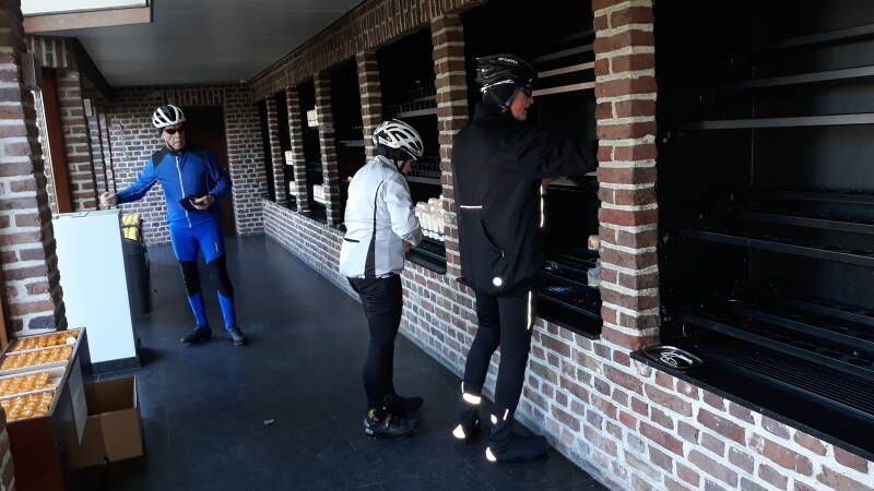 Vandaag 6 dappere strijders aan de start voor de rit der ritten naar Maasbracht. Omdat de jongere broer van Lei plotseling was gestorven hebben we in Heppeneert kaarsjes opgestoken, zie de foto. Aan de start: Wim, Jean, Erna, Toos, Tine en Louwrens. Het ging heel goed op de heenweg langs de belgische kant, later kwamen we erachter dat we toch een stevig windje in de rug hadden. In Heppeneert zijn we kaarsjes gaan op steken, conform afspraak. Toen een teleurstelling, ons standaard café de Wiel was gesloten, maar gelukkig is er in Maasbracht meer te doen. Na de koffie langs de bladerenweg naar Echt en dan via de standaardroute naar huis. Op de terugweg de wind vol op kop, gelukkig hebben we Wim en Jean, maar vooral Tine om het beulswerk te doen, bedankt hiervoor. Het was lekker weer maar wel veel wind.